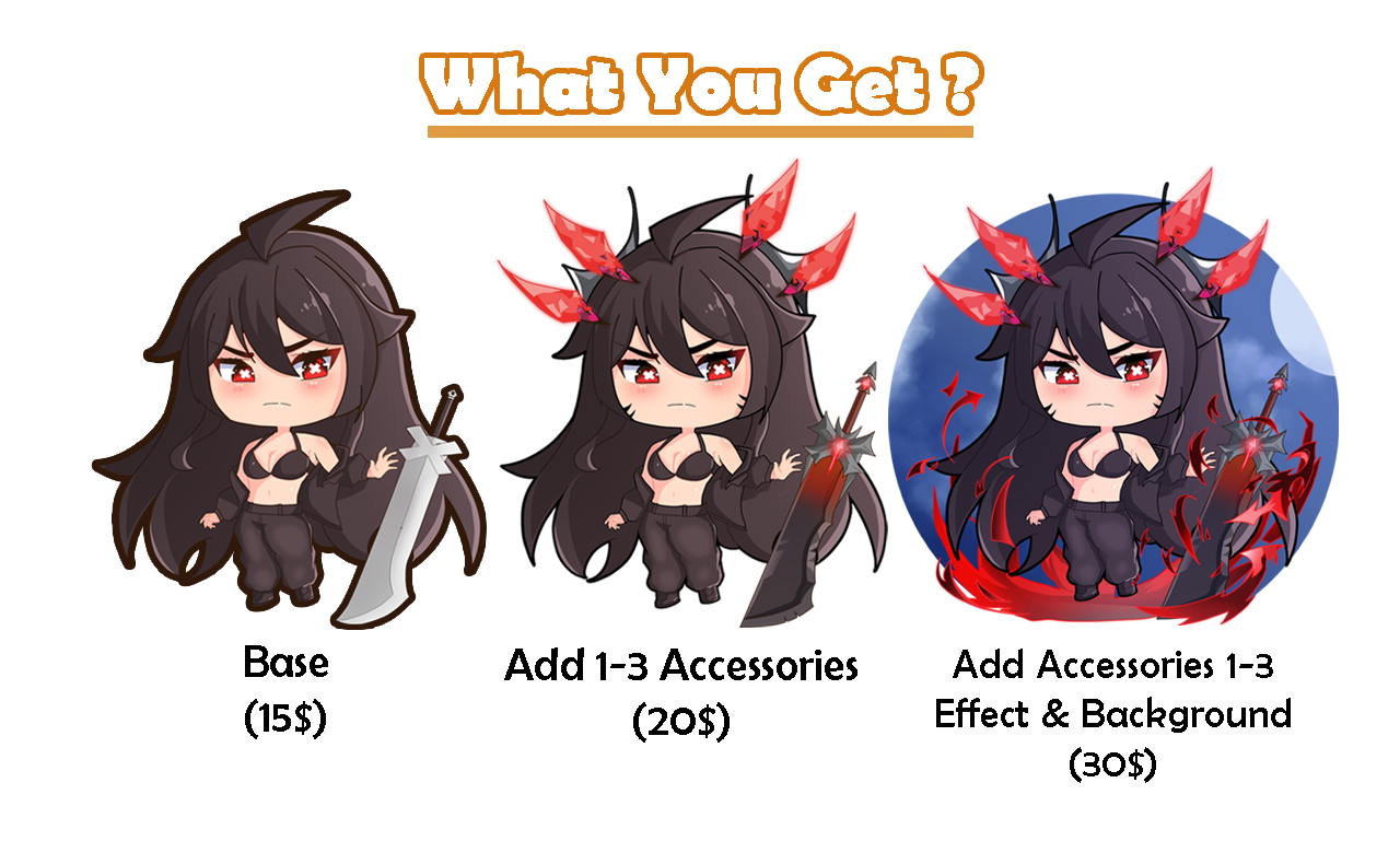 - Adding more Accessories will have additional fee 1-3 (5$)